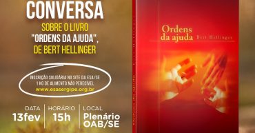 RODA DE CONVERSA SOBRE O LIVRO “ORDENS DA AJUDA”, DE BERT HELLINGER DIA: 13/02/2020 HORÁRIO: 15H LOCAL: PLENÁRIO DA OAB/SE INSCRIÇÃO SOLIDÁRIA: 01KG DE ALIMENTO NÃO PERECÍVEL SEM CERTIFICAÇÃO