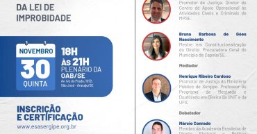 Data: Segunda-feira, 30 de novembro Horário: 18h às 21h Local: Plenário da OAB/SE Av. Ivo do Prado, 1072 – São José, Aracaju Inscrição: Site da ESA (www.esasergipe.org.br) Certificação: ESA VAGAS LIMITADAS! Palestrantes: ALEXANDRE ALBAGLI OLIVEIRA – Promotor de Justiça. Diretor do Centro de Apoio Operacional às Atividades Cíveis e Criminais do MPSE. BRUNA BARBOSA DE […]