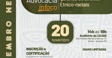 Data: Segunda, 20 de novembro Horário: 14h às 18h Local: Auditório da CAASE Rua Tenente Martinho Garcez, 71, Centro – Aracaju-SE INSCRIÇÃO e CERTIFICAÇÃO : (1Kg alimento não perecível) www.esasergipe.org.br Carga Horária: 4h PROGRAMAÇÃO 14h – Abertura 14:30h – Resumo das Ações da Comissão de Igualdade Racial em prol da Advocacia e Sociedade 15h – […]