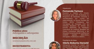 Datas: 01 e 02 de agosto Horário: 18h30 às 21h30 Local: Plenário da OAB/SE Inscrição e Certificação: www.esasergipe.org.br Valor do Investimento: Advocacia em Geral: R$ 150,00 Jovem Advocacia: R$ 120,00 Público-alvo: Advogadas, advogados e jovens advogados de Sergipe Palestrante: FERNANDA TARTUCE Doutora e Mestra em Direito Processual pela USP. Professora no Programa de Mestrado. Docente […]