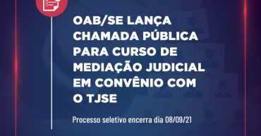 OAB/SE LANÇA CHAMADA PÚBLICA PARA CURSO DE MEDIAÇÃO JUDICIAL EM CONVÊNIO COM O TJ. EDITAL FICHA DE INSCRIÇÃO