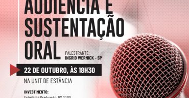 OFICINA: ESTRATÉGIAS DE PREPARAÇÃO PARA AUDIÊNCIA E SUSTENÇÃO ORAL – REGIONAL ESTÂNCIA Professora: Ingrid Wernick – SP Realização: ESA e COMISSÃO REGIONAL DE ESTÂNCIA Data inicial: 22/10/2019 Data final: 22/10/2019 Horários: 18H:30MIN Local onde ocorrerá o evento: UNIT ESTÂNCIA Ementa: Comunicação assertiva na advocacia Conhecendo o sistema representacional e sua aplicação na preparação da audiência […]