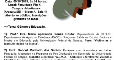 XVII ENCONTRO DO FÓRUM DE PESQUISA DE GÊNERO DA CDDM-OAB/SE 14:00 hs – Abertura; 14:30 hs -Painel 1 – Diálogos sobre o Outubro Rosa (Enfermeiras Daianne Cardinalli e Carilene Silva Oliveira); 15:00 hs – Painel 2 – Gênero e Educação: · Profª Dra. Maria Aparecida Souza Couto. Tema: “Violências e Masculinidades na Escola”; · Prof. Gabriel Machado dos Santos. Tema: “A.L.V.O. – […]