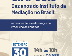 Data: Terça-feira, 30/09 Horário: 14h às 18h Local: Auditório da CAASE em Aracaju – Rua Tenente Martinho Garcez, nº 71, Centro. Público-alvo: advocacia em geral, estudantes, estagiários de Direito e sociedade. Confira a programação Tema 1 – Confissões de um mediador em relação à jornada trilhada: passos e compassos de ideais, preocupações e esperanças Dorval […]